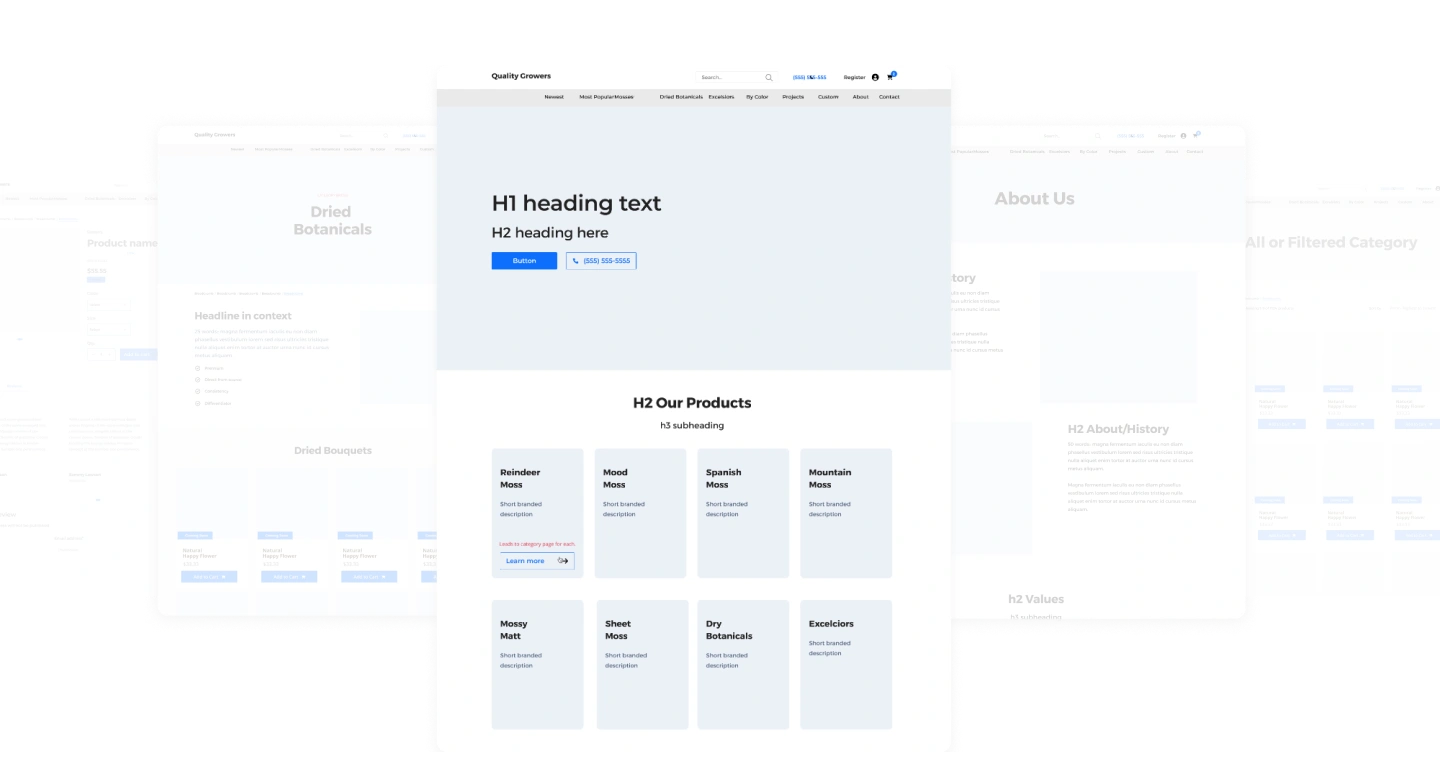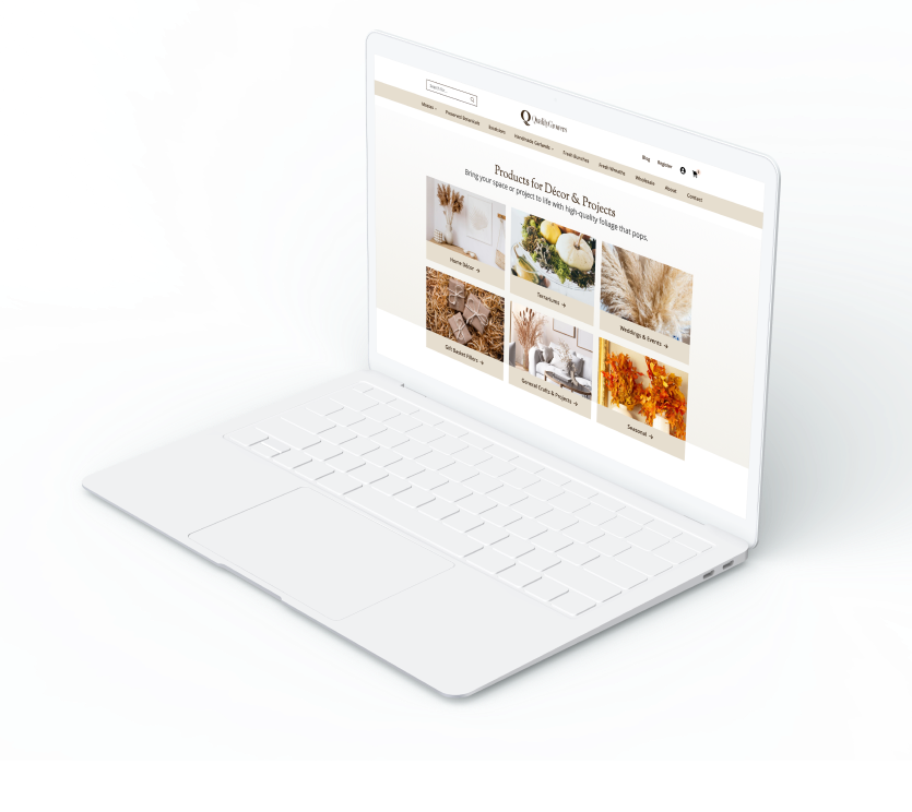 Quality Growers had a strong product offering and loyal wholesale demand, but no direct-to-consumer ecommerce presence. Customers could not browse products, place orders online, or discover moss and garland offerings through paid or organic digital channels.