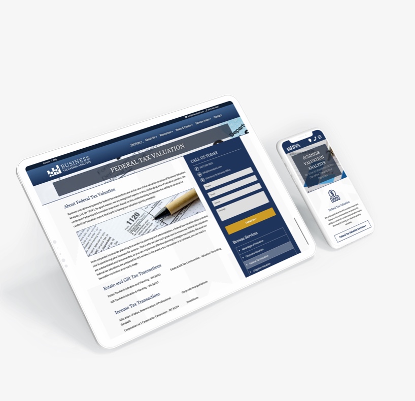 Business Valuation Analysts wanted to increase their online presence and target potential business owners looking for valuations and appraisals in several cities and locations in Florida. They needed an Orlando website design agency to increase leads related to Transactional Valuation services with an “a la carte” quote for each city. Business Valuation Analysts needed the right website and SEO team to help them achieve their goals.