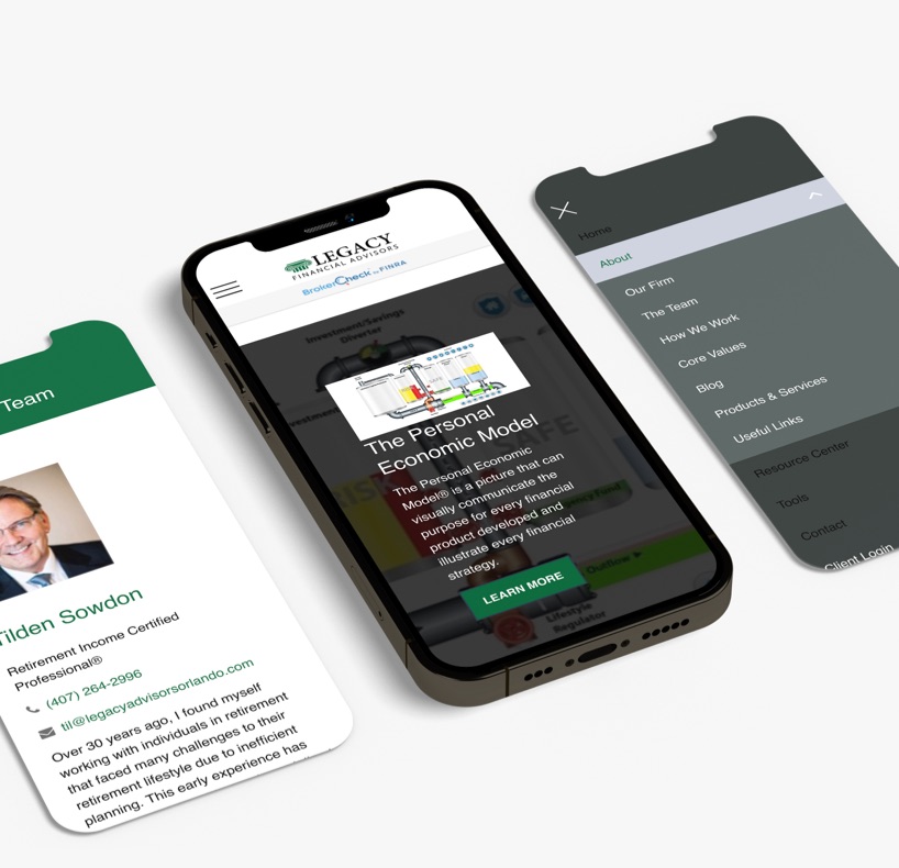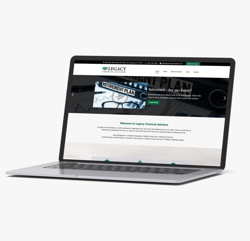 Legacy Financial Advisors, a premier financial planning firm in Central Florida, collaborated with our Orlando web design agency to create an informative and user-friendly website that could help increase its online traffic and leads. The new site enhances their online presence with SEO best practices, corporate videos, and a detailed glossary to educate clients and outrank competing firms on Google. A responsive design with strategic calls to action and mobile optimization has significantly increased the company’s local visibility and lead generation.